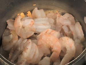 Shrimp added to the sauteed garlic