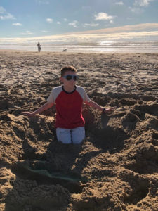 Teen buried his legs in the sand on the Oregon Coast