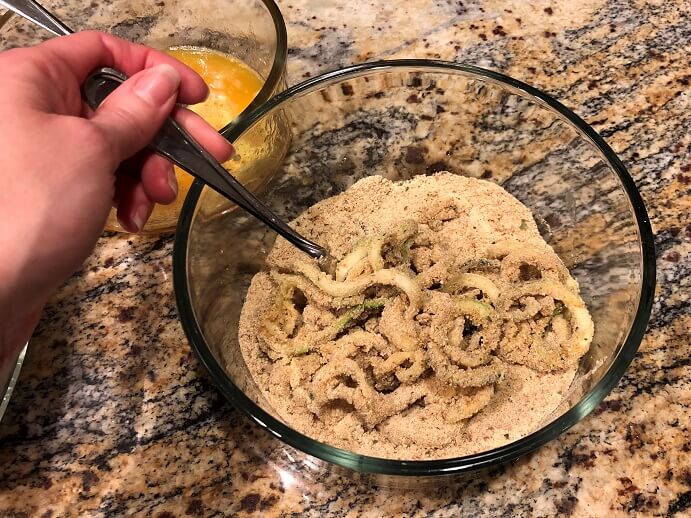 coat-zucchini-with-bread-crumbs / No Comments Zucchini breaded a l’anglaise with flour, egg wash, and seasoned bread crumbs