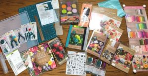 All the supplies for making crepe paper flowers from the National Craft Month contest by Lia Griffith