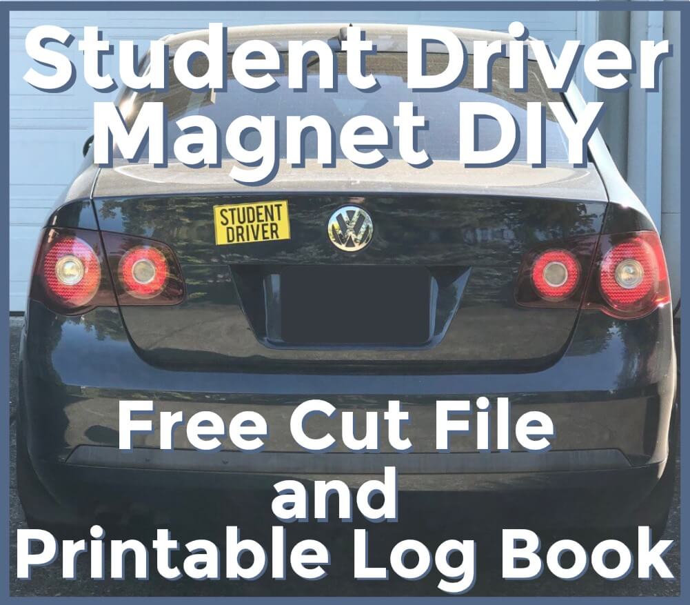 How to make a Student Driver Sticker or Magnet with free cut file and bonus free printable driving log.