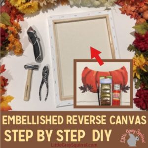 Embellished Canvas DIY graphic / No Comments Embellished reverse canvas step by step tutorial by Little Gray Squirrel