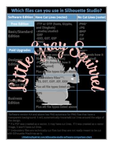 Files to use in Silhouette cheat sheet by Little Gray Squirrel