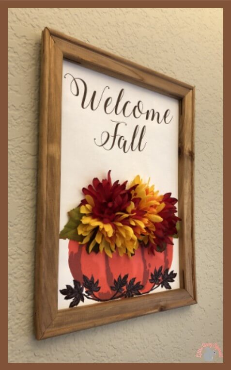 Side view of finished embellished reverse canvas project by Little Gray Squirrel