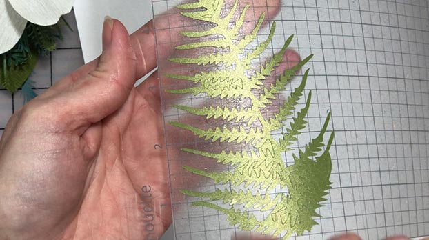 I used my Silhouette Cameo 4 to cut the frosted paper so I could get the intricate cuts of the pine needles, fern, juniper, and spruce branches.
