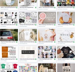 Screenshot of listings for different mockups on CreativeFabrica