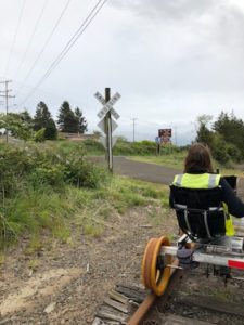 Oregon Coast Railriders ride on the train tracks so they must stop at railroad crossings and pass when it is safe.