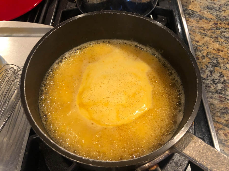 - Combine pumpkin puree, water, butter, brown sugar, salt, and vanilla in a 2 quart pot and stir while you bring to a boil. Keep an eye on it so it doesn't boil over!