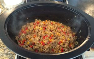 slow cooker chili brown meat and vegetables / No Comments Browned turkey with peppers and onions for Get Back to Crafting Slow Cooker Chili
