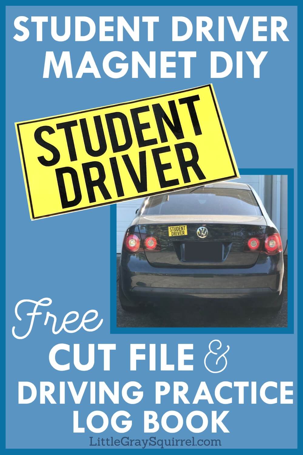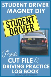 Example of Student Driver sticker or magnet made from a free cut file and student driver magnet on back of car