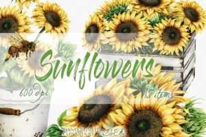 Hand painted sunflower clipart png graphics for crafts