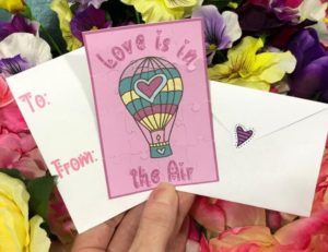 Finished puzzle valentine with envelope and matching print and cut stickers from tutorial using graphics in silhouette studio