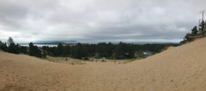 The view when you climb to the top of the sand hill at Barview Campground. You can see the Tillamook Bay and the Barview Jetty.