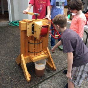 Cider flowing from apple pulp in a cider press / No Comments Little Gray Squirrel kids making homemade apple cider