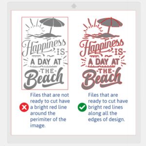 Two craft designs that look the same to show what cut lines look like in Silhouette Studio. One is a png file that doesn’t have cut lines and the other is an svg file that has red cut lines and is ready to cut.