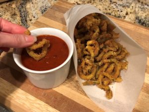 zucchini-curly-fries / No Comments Breaded zucchini curly fry recipe deep fried or made in an air fryer
